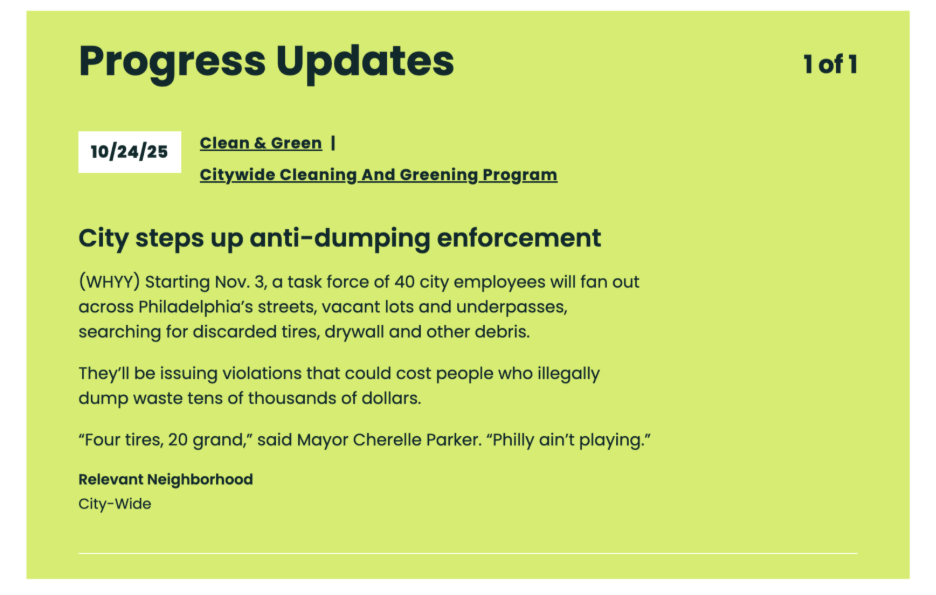 A new tool to help Philadelphians navigate the progress of city policy initiatives
