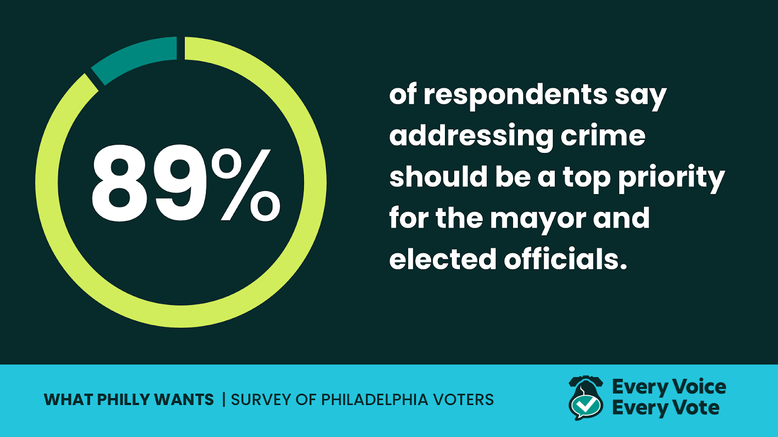 In 2023, the Institute invested in public opinion research to understand the key civic issues that matter to Philadelphians. The results helped partners understand top priorities from residents for municipal candidates, quality of life issues, and potential solutions. Every Voice, Every Vote coordinated the release of the data with its partners, which included media coverage such as The Philadelphia Inquirer’s in-depth data analysis, deep dives into specific issues raised by the data, or social media graphics, as pictured above.